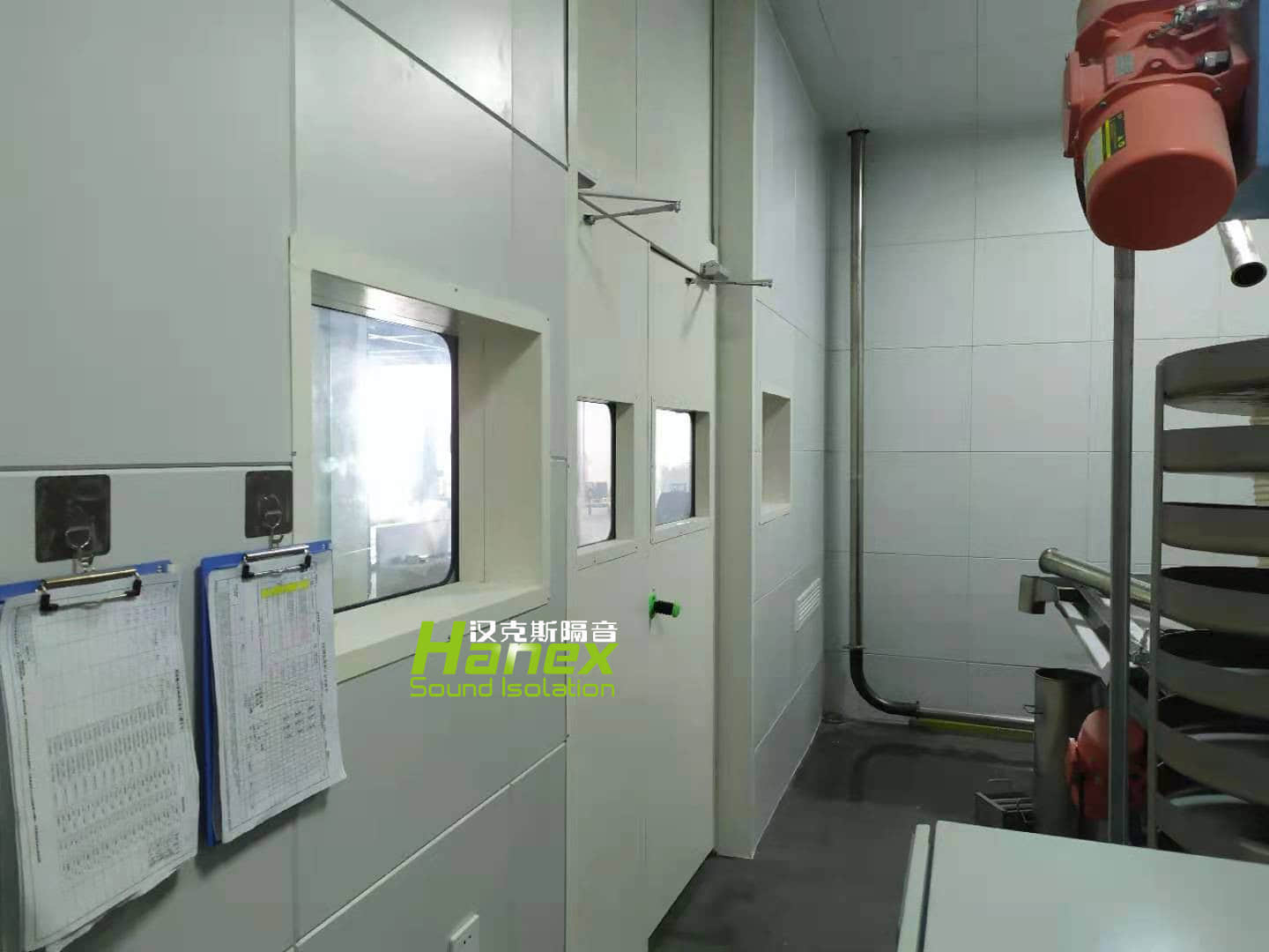 本松新材料技術(shù)(蕪湖)有限公司隔音房采用復(fù)合鋼制吸隔聲板模塊結(jié)構(gòu),頂板設(shè)計80mm厚,四面?zhèn)劝逶O(shè)計80mm厚。噪聲控制設(shè)備設(shè)施安裝后不影響設(shè)備的正常運行,不影響設(shè)備的通風(fēng)散熱,嚴格符合相關(guān)的安全規(guī)范;