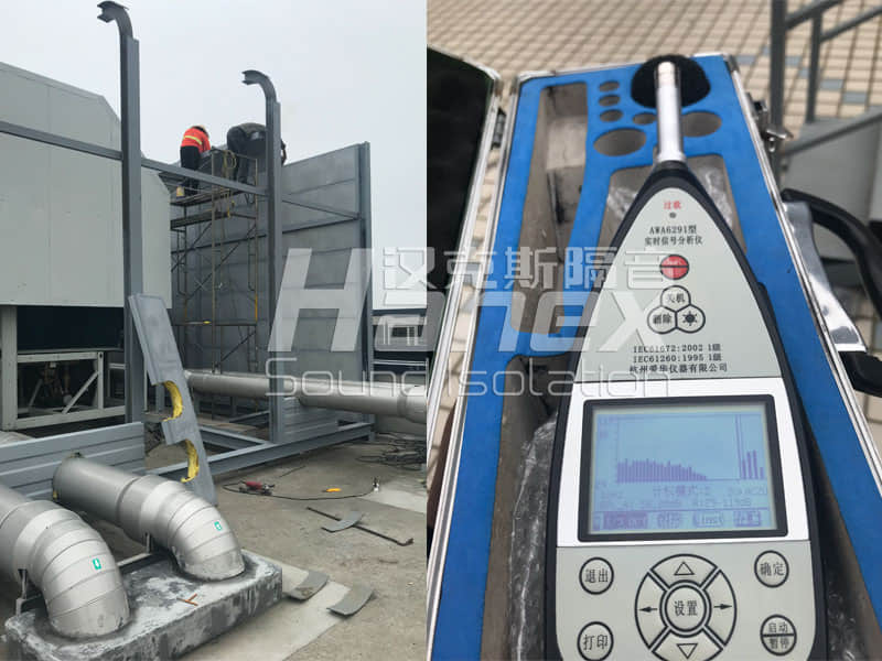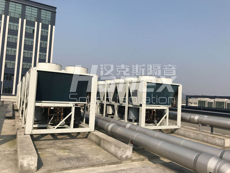 我們曾經(jīng)在風(fēng)冷熱泵機(jī)組噪聲處理項(xiàng)目中,我們設(shè)計(jì)的降噪方案使未處理的風(fēng)冷熱泵機(jī)組噪聲值95dB,經(jīng)過降噪處理后,同一位置監(jiān)測噪聲值<65dB,取得了降噪30分貝的滿意結(jié)果。